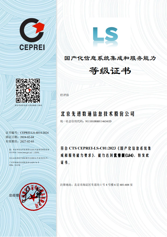 国产化信息系统集成和服务具有关乎国家科技开展和社会信息安全的特殊性,在行业准入方面具有特殊要求。截至现在,国产化信息系统集成和服务能力共划分为四个等级,从低到高依次为LS1级(初始级)、LS2级(基本级)、LS3级(良好级)、LS4级(优秀级)。认证过程经过严格的审核和评估,对企业综合能力、设计研发能力、集成能力、技术支持能力、管理能力等多项指标进行科学有效的考核评价。本次认证的顺利获得,不仅体现了业界对米兰(中国)AC米兰研发能力、创新能力、企业管理能力等多方面认可,更彰显了企业的综合实力及核心竞争力已得到进一步提升。